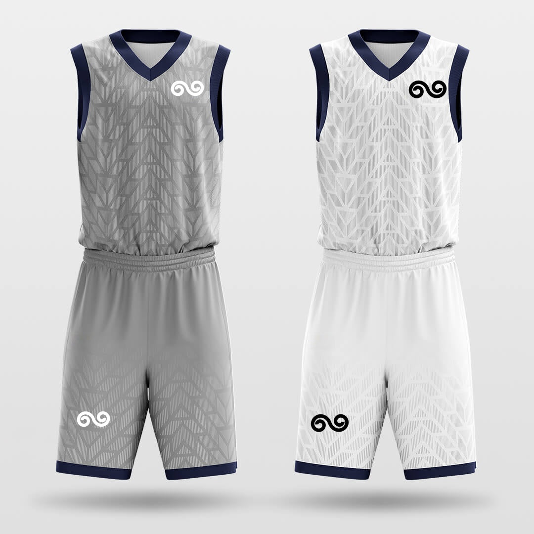 grey and white graphic basketball jersey set